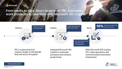 In the petrochemical industry, staying ahead means leveraging cutting-edge technology. Petrochemical Industries Company (PIC) has done just that, transforming its operations with Copilot for Microsoft 365. From drafting emails to generating complex documents in minutes, Copilot has not only enhanced productivity and data security but also fostered a more professional communication style across the company.