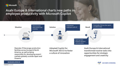 Asahi Europe & International's journey with Copilot has revolutionized the way its teams collaborate, transforming routine tasks into opportunities for strategic engagement and creativity. "One of the biggest advantages of Copilot is that you can get meeting minutes done quickly," Percival shares. “This enables team members to focus on action items rather than administrative notetaking.”