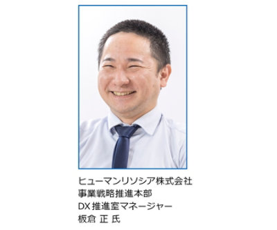 1985 年に創業し「為世為人」を綱領に掲げるヒューマングループの中核企業として、人材派遣・人材紹介・業務受託と 30 年以上にわたって総合人材サービスを提供してきたヒューマンリソシア。労働市場がめまぐるしく変化し、社会のニーズもその時々で大きく変化するなか、「人材サービスで人と企業、そして社会の発展に貢献する」ことを使命に総合人材カンパニーとして新たなサービスを生み出し続けています。ヒューマンリソシアの事業動向について、事業戦略推進本部 DX推進室 マネージャー 板倉 正 氏はこう話します。
