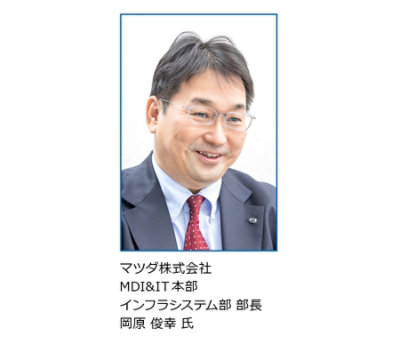 インフラシステム部を率いる部長の岡原 俊幸 氏は、同部に課せられたミッションについて次のように語ります。「当社の IT 部門は、マツダグループのシステム化全般を統括しており、製品開発、サプライチェーン等領域ごとのアプリケーションシステムを担当する部門、領域を超えた構造課題に取り組む部門、グループ全体の IT インフラを整備する私の担当する部門があります。昨今は全社横断で DX を推進する活動も立ち上がり、本部内外から IT インフラへの多様なニーズ、早期提供を期待されているところです」