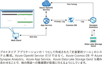 「まず環境整備では、多様な用途で活用しやすいように、横展開が容易な構成にしました。そのために Azure OpenAI Service だけではなく、膨大な学習データを蓄積しやすい Azure Cosmos DB や、学習状況や活用状況を分析するための Azure Synapse Analytics、ユーザー インターフェイス作成のための Azure App Service を組み合わせています。また Azure OpenAI Service ではログが内部に蓄積されるようになっていますが、このようなデータも Azure Cosmos DB に蓄積し、お客様による独自性のある活用が行えるようにしています。さらにプロトタイプのユーザー インターフェイス開発では、ユーザー様がすぐに使いこなし、その効果を実感できるように配慮しました」。