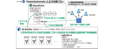 営業部門では帳票処理フローの自動化によって年間 1 万 8,000 時間の業務を削減。モノ作り・調達領域では AI Builder と Power Automate を活用することで、8 フォーマット/約 5 万枚の金型構造図のデータ化を、わずか 3 か月で実現しています。これまで使ってきた既存の RPA を Power Automate に移行することも検討中。人材 DX や事業 DX の推進においても、Microsoft Power Platform が重要な役割を果たすと期待されています。