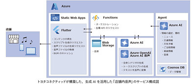 モビリティと IT を軸としたビジネスを展開するトヨタコネクティッドの中で、次世代の事業の柱を見つけ具現化することをミッションとしている先行企画部。ここで生まれたのが、生成 AI を活用した「店舗内AI音声」で店舗内放送を変革していくというアイデアでした。これをマイクロソフトのハッカソン形ワークショップ Azure Light-up で提案したところ、参加者全員が「面白い」と評価。その翌週にはわずか 2 日間で、実際に動くシステムが作られています。