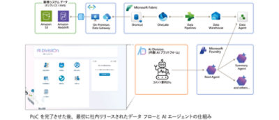 課題解決に向け、マイクロソフトと共に新たなデータ基盤の検討を開始。マイクロソフトを選んだのは、AI の未来を明確に指し示すと共に、その実現に向けた各種製品を他社に先駆けて提供していることを評価したからです。検討の結果、Microsoft Fabric と Microsoft Foundry の PoC に着手。同社で毎週行われている社員向けアンケート調査の結果を、自動的に取得・要約する仕組みを実現しました。PoC はわずか 1 か月で完了し、2025 年 8 月には本番運用が始まっています。