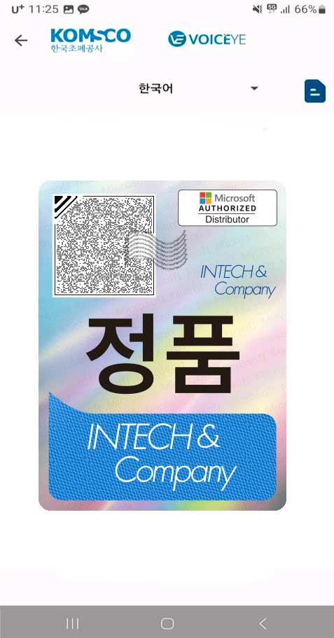 정품인증 앱(Trustlabel)에서의 정품인증 화면